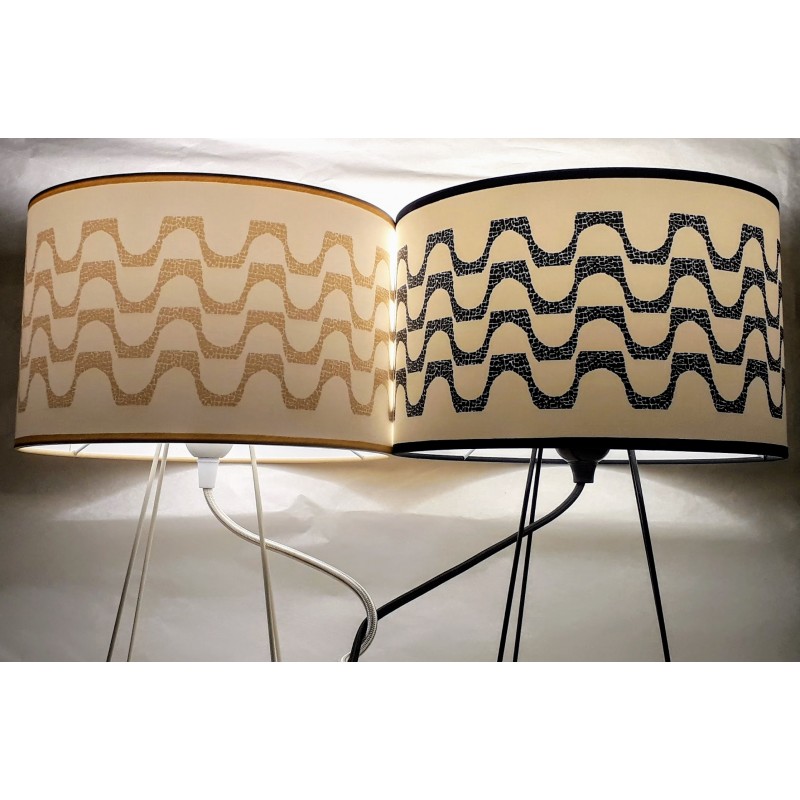 Abat jour de 25 cm  de diamètre,(sur la photo) sur un pied en métal.Création originale et unique. Motif IPANEMA inspiré de la célèbre plage de Rio.(modele déposé)
