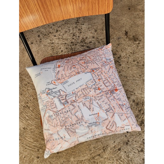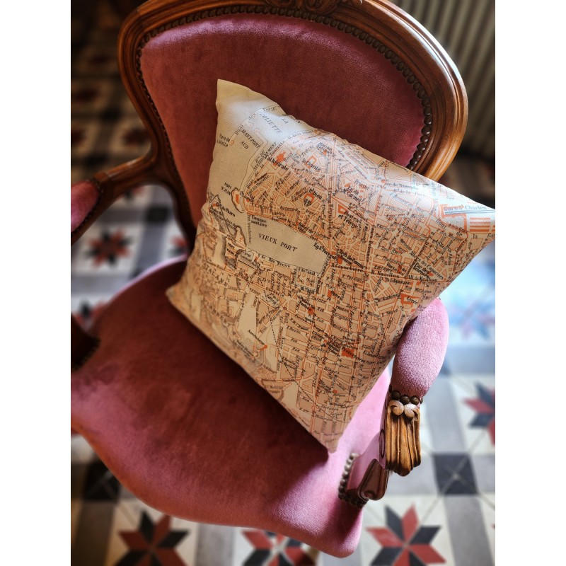 HOUSSE de COUSSIN collection CITY, carte ancienne des villes (1900 avant guerre) imprimé sur polyester tout doux. 45X45