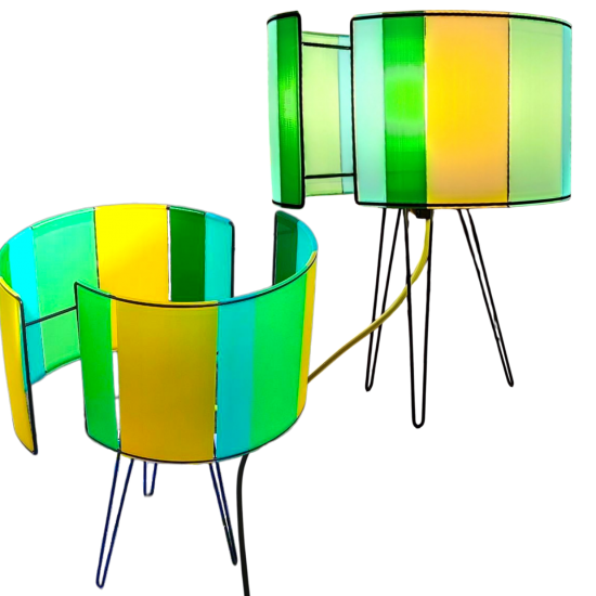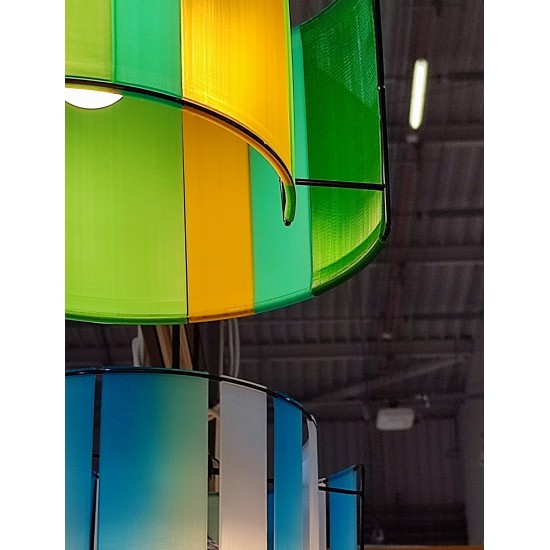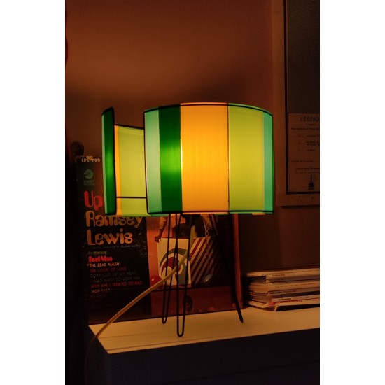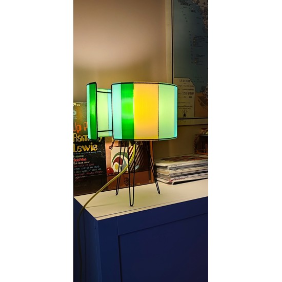 Elle est réalisée en impression 3D. A une Forme décalée, elle peut s'utiliser en abat jour, suspension ou posée sur un meuble. Selon la couleur des panneaux nous aurons une ambiance de saison...L'impression est réalisée ici dans l’Hérault à quelques km de chez nous