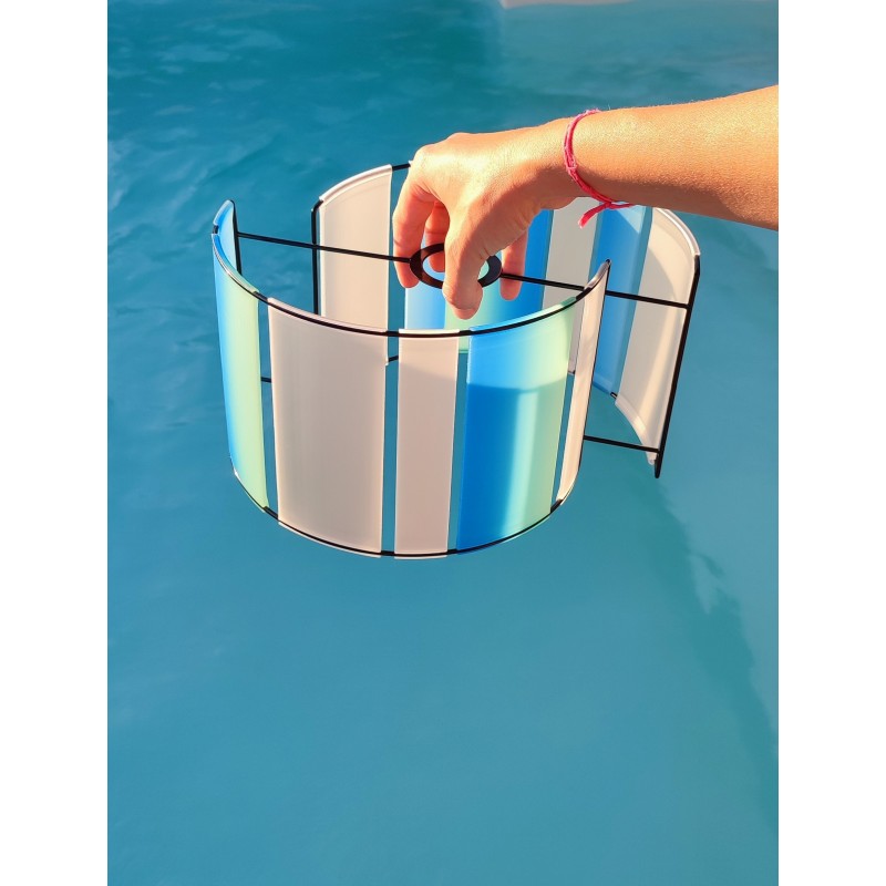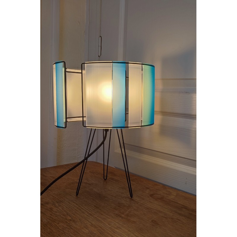 Cette pièce est fabriquée en France à partir de ressources renouvelables. Certains fils sont issus de matières organiques, coquillage, huitres, moules, briques pilées. Elle est réalisée en impression 3D. A une Forme décalée, elle peut s'utiliser en abat jour, suspension ou posée sur un meuble.