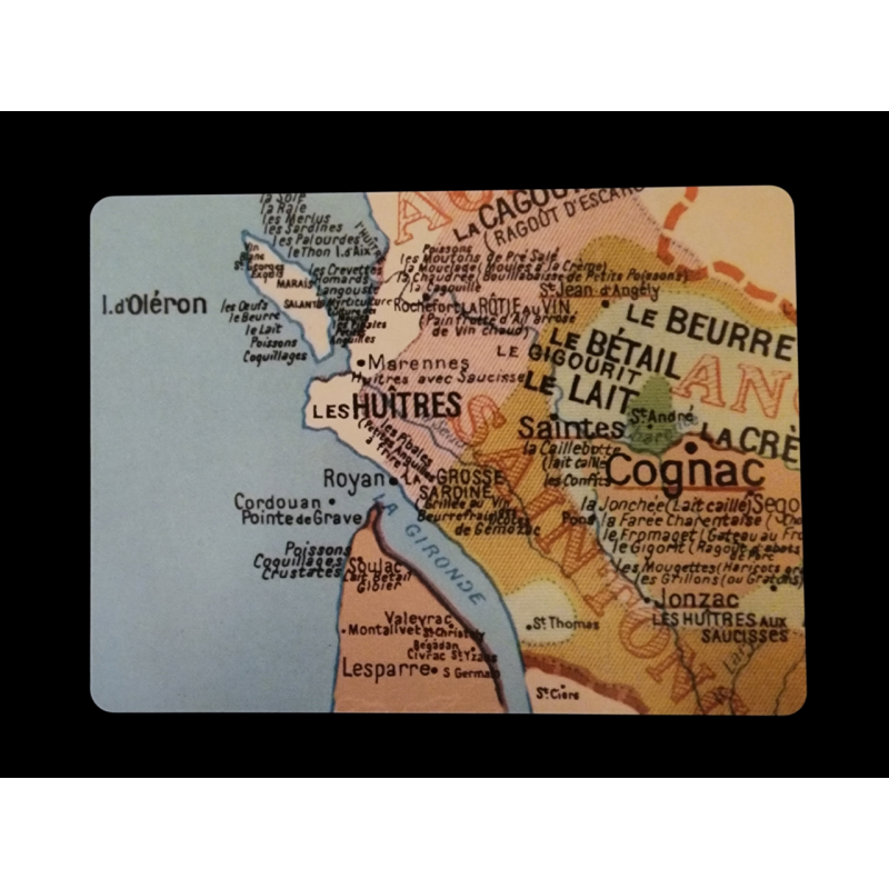 Planche à découper de votre région, faite à partir d'une carte de la Gastronomie de 1951.