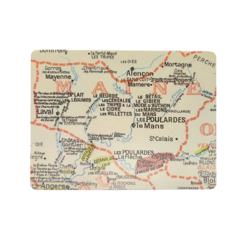 Planche à découper de votre région, faite à partir d'une carte de la Gastronomie de 1951. Celle ci est particulierement fournie car riche en vin et specialités!