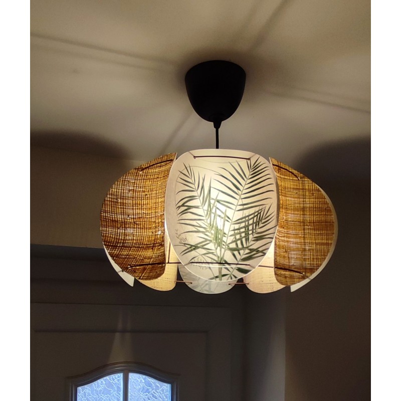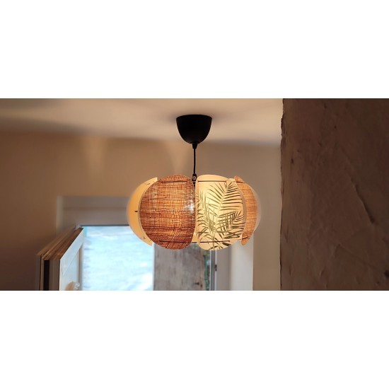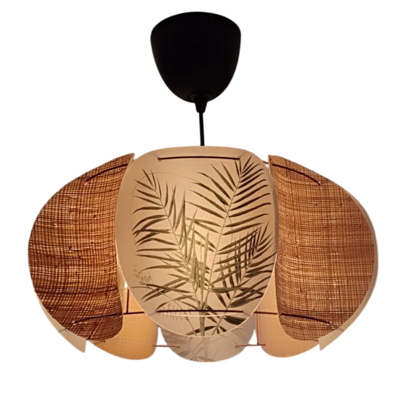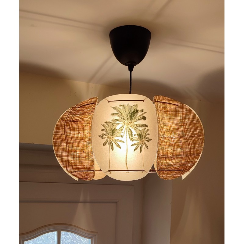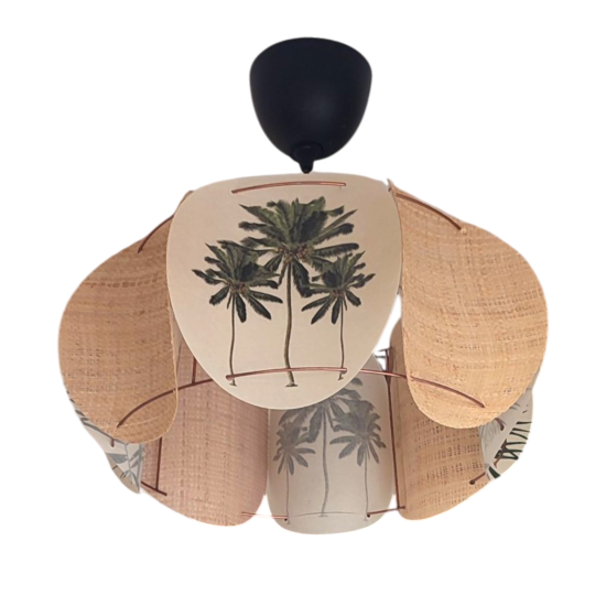 -Composée de rafia et d’illustrations COCOTIERS et ROTIN. Au total 8 cercles s'alternent.
