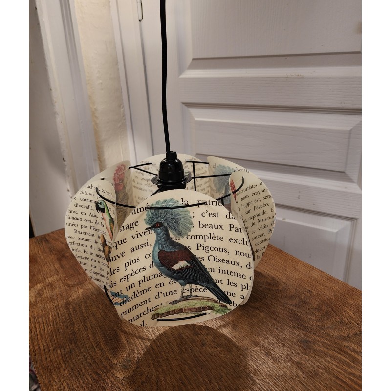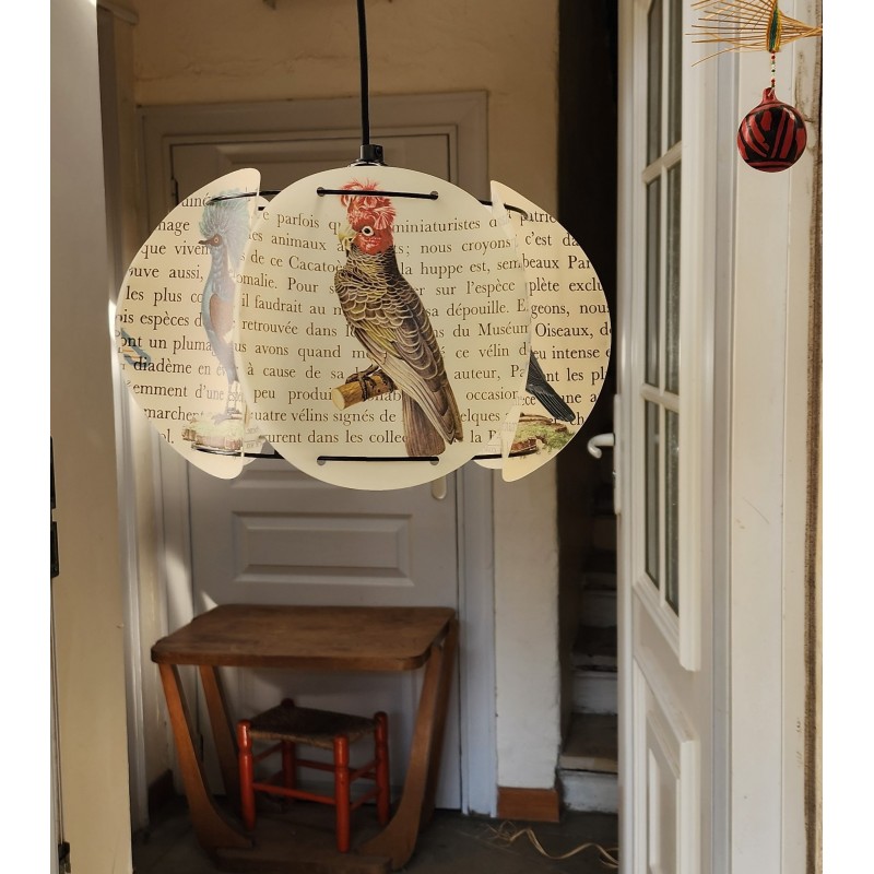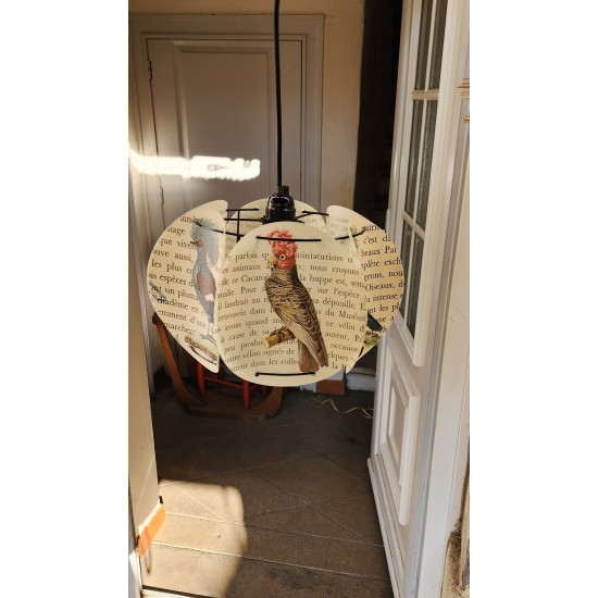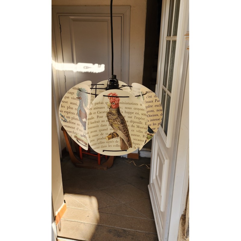 Lampe composée de 6 cercles en polyphane imprimé, thème FLORIDE, IBIS ET COCOTIER
