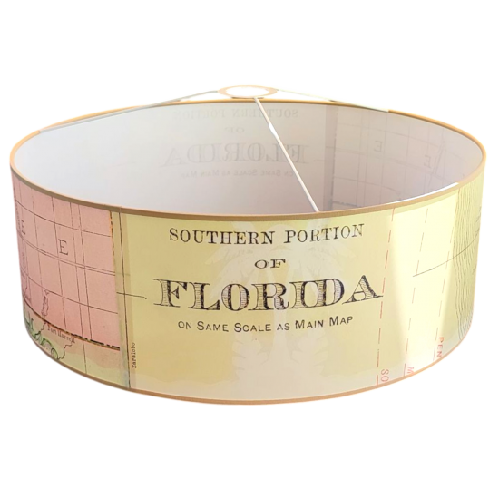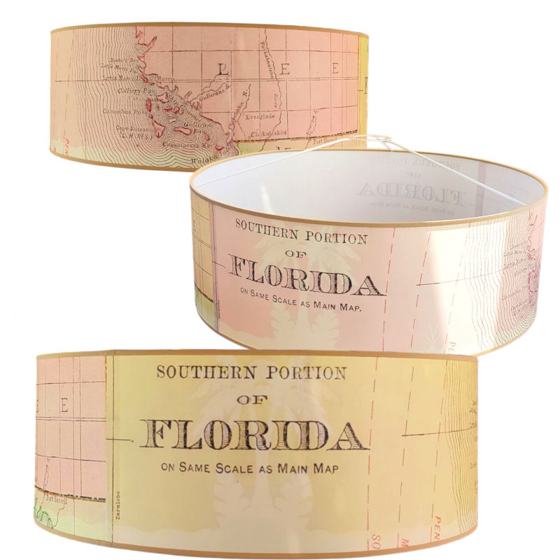 Grand modèle SUSPENSION MOTIF CARTE MARINE DE LA FLORIDE POUR UN EFFET VINTAGE BICOLORE JAUNE ET ROSE